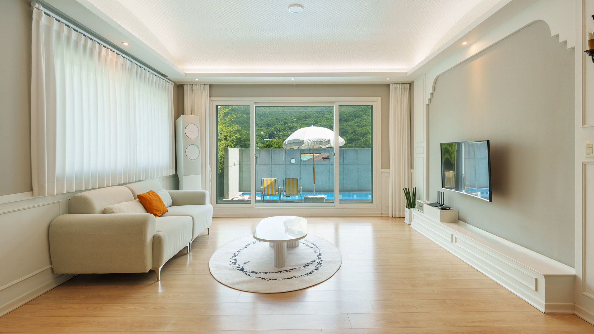 - 집기품목 : 욕실용품, 남녀공용, TV, 금연, 냉장고, 에어컨, 전기밥솥, 취사시설/도구, OTT, 식탁, 드라이기, 전자레인지, 인덕션, 샴푸, 린스, 바디워시, 커피머신, 타월, 자쿠지, 와이파이, 블루투스 스피커, 산전망